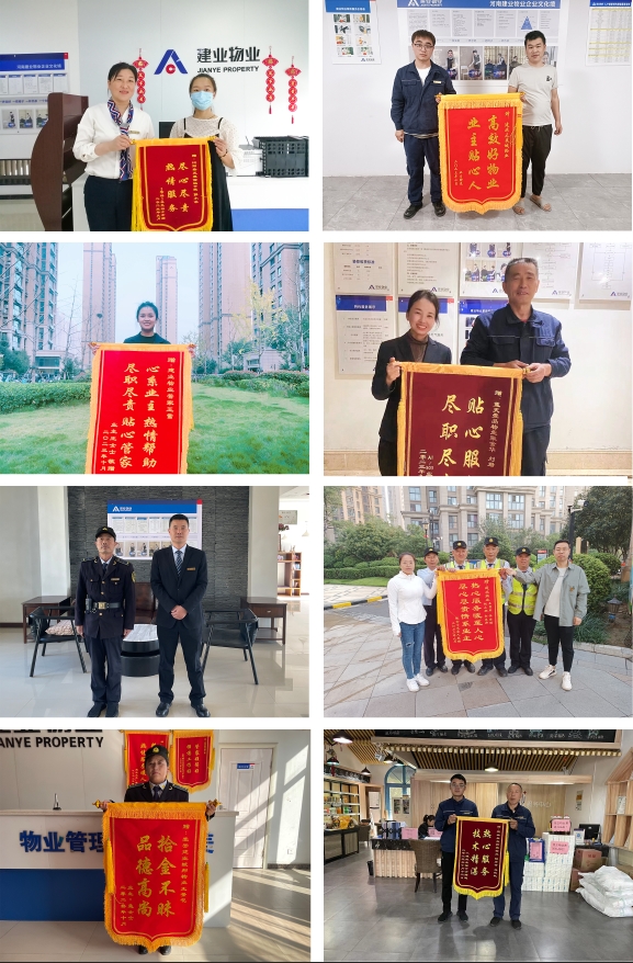 10月份,建業物業在管園區涌現出好人好事706件,其中收到錦旗185面、感謝信80封、其他致電表揚等442次。