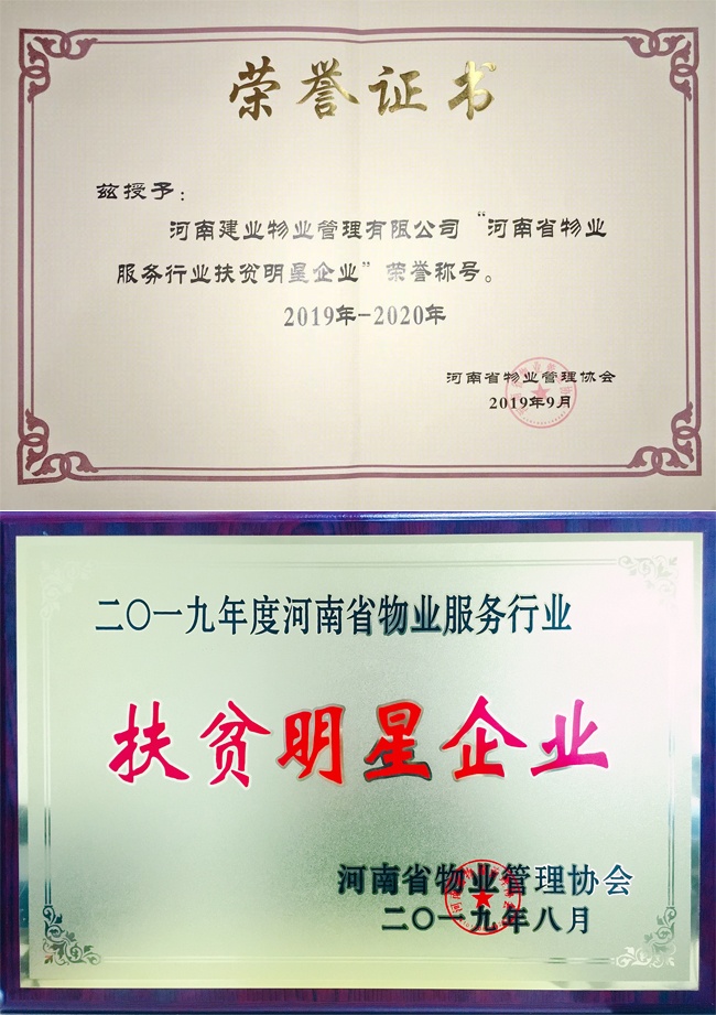 連日來,建業物業獲評“扶貧明星企業”“河南省物業服務行業2019年度品牌企業”“河南省物業服務行業2019年度先進企業”等多項榮譽,建業物業三位優秀員工獲得“河南省出彩物業人”榮譽稱號,佳音頻傳,每一位建業物業人都感到驕傲與榮光。