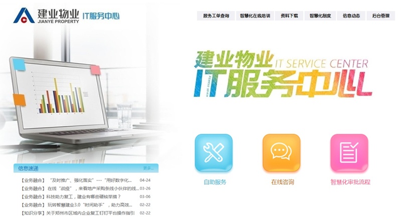 為提高建業物業智慧化系統問題處理效率、提升智慧化服務品質、加快智慧化業務融合及智慧化運營體系建設進度,建業物業IT服務中心于7月11日正式上線。