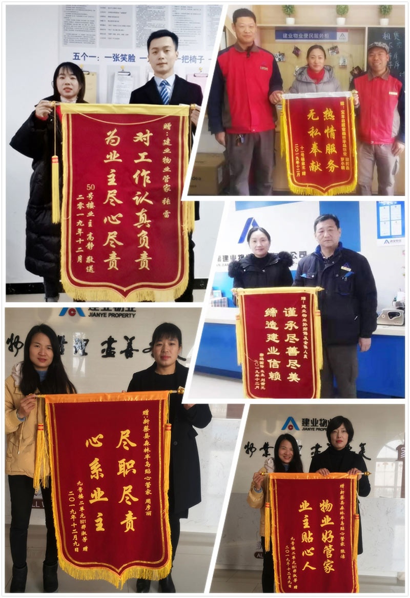 嚴寒十二月,寒風刺骨。建業物業全體員工提供的暖心服務卻能抵御寒冬,讓業主感受到春天般的溫暖。本月,我們收到拾金不昧、技術高超、服務熱情、助人為樂等好人好事共405例,其中,收到錦旗113面、感謝信146封、致電感謝及其他形式的點贊146起。
