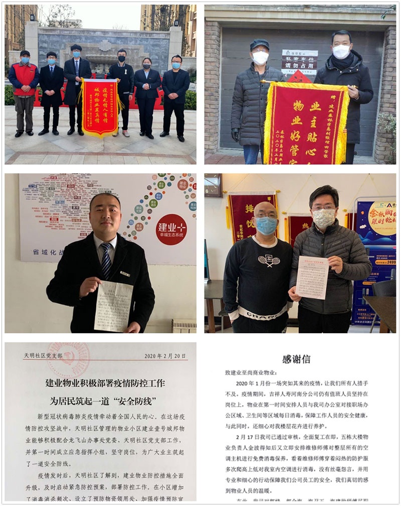 2020年春節前后,一場突如其來的疫情席卷全國,建業物業在管的近300個小區第一時間啟動一級響應,一萬多名建業物業人紛紛主動放棄春節假期,陸續奔赴到崗。在這場全民戰“疫”的行動中,涌現出一批批令人感動而印象深刻的人和事。2月,建業物業在管小區共涌現出疫情防控、拾金不昧、技藝高超、熱情服務、助人為樂等各類好人好事共計253例,其中收到錦旗25面,感謝信69封,來電感謝及其他159起。