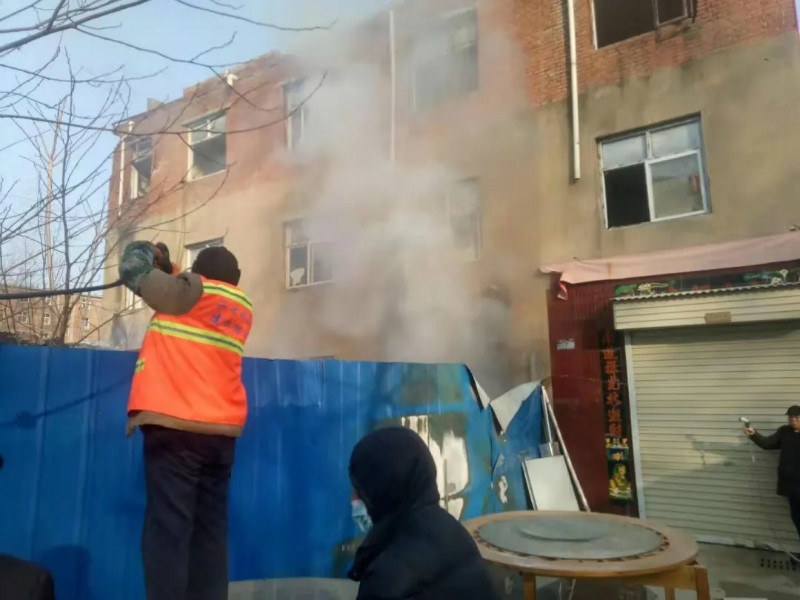2月3日上午9點左右,建業物業鄭州二七環衛項目垃圾清運車及水車司機班長趙輝和路留柱匯報完工作返回路面作業,經過大學路焦家門時,看見圍擋內著火濃煙滾滾,路班長馬上抽調路上最近的水車司機王瑞嶺,火速將水車開來救火。