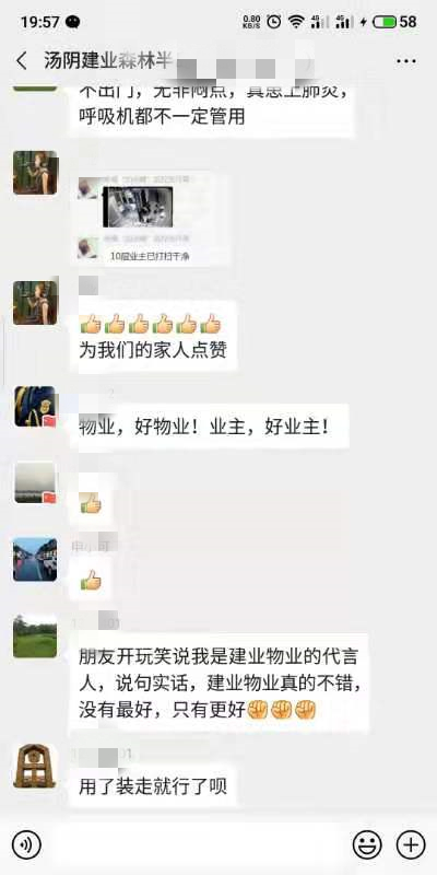 看著朋友圈、業主群的點贊以及業主當面的表揚與叮囑,奮斗在一線的建業物業人倍感溫暖,也更加充滿力量了。