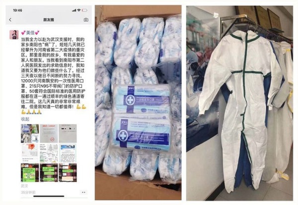 南陽·建業桃花島業主王佳從大年初一開始,短短十幾天,不知疲累、夜以繼日多方尋求幫助,累計出資11萬余元購置了四批緊缺醫用物資,支援到武漢和南陽各大定點醫院。