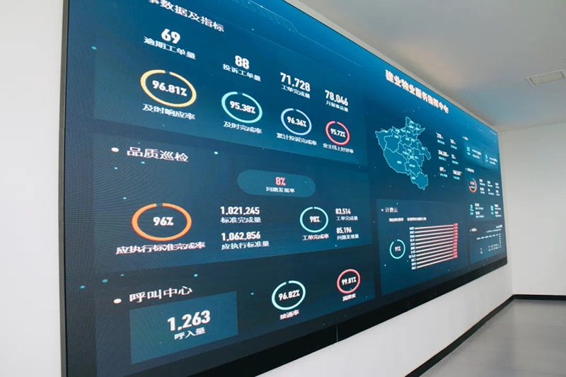 建業智慧物業借助互聯網和大數據技術,線上、線下融合,完成物業基礎服務客服、報事、品質、消防、電梯、遠程樓宇自控(RBA)、計費等模塊,多個系統的搭建實時監控,關鍵運營指標實時抓取,并將智慧物業信息全部整合、共享在大屏上,建立一個集中展現、運維、管理、協調、指揮、調度的綜合環境,實現物業管理與服務過程中的大數據支撐與科學決策,最終達成數字化轉型與科技賦能。