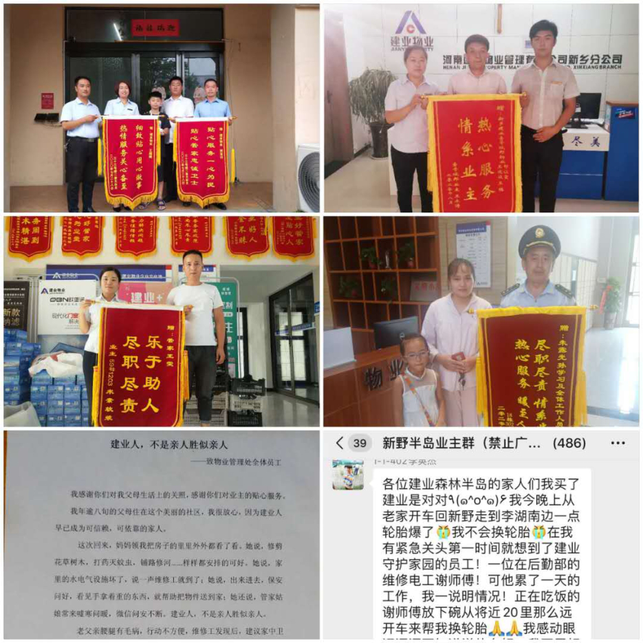 一封感(gan)謝(xie)信(xin),寥寥數語卻充滿感(gan)動;一面(mian)錦(jin)旗,尺寸方圓卻代表(biao)著業(ye)主滿滿謝(xie)意;一通電話,常(chang)常(chang)是(shi)混雜(za)著感(gan)動的淚水;一次微信(xin)表(biao)揚,是(shi)業(ye)主對建業(ye)物(wu)業(ye)人的禮贊(zan)。8月(yue)期(qi)間,建業物業收獲了(le)滿滿的(de)(de)謝意。在(zai)美好的(de)(de)9月(yue),全(quan)體建業物業人將以更飽滿的(de)(de)熱情為業主的(de)(de)幸福生活保駕(jia)護(hu)航。
