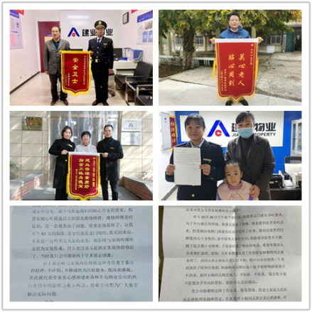 11月(yue),建業物業在管園區(qu)內涌現(xian)好(hao)人(ren)好(hao)事共620件,其(qi)中收到(dao)錦(jin)旗(qi)124面(mian)、感謝(xie)信103封、其(qi)他(ta)致(zhi)電表揚等393次。
