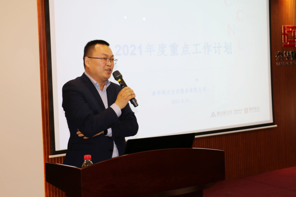 緊接(jie)著,泰華錦(jin)業生(sheng)活常務副(fu)總經理李亮亮圍繞泰華錦(jin)業生(sheng)活2021年度重點工作(zuo)計劃(hua)進行(xing)匯報。匯報中,李總明確(que)了泰華錦業(ye)(ye)生活未(wei)來三年發(fa)展(zhan)的(de)(de)核(he)心業(ye)(ye)績指標,提出“穩定主(zhu)營(ying)(ying)收入、縱深(shen)推進增值服務”的(de)(de)經(jing)營(ying)(ying)策略,“西進北上奔(ben)赴京津冀、擴大根據地”的(de)(de)市(shi)(shi)場發(fa)展(zhan)戰略,同時圍繞聚焦融合、凝聚團隊、降本提質增效,案場煥(huan)新行(xing)動、新長征100人才戰略、創新發(fa)展(zhan)、對(dui)標學(xue)習、建業(ye)(ye)大服務體(ti)系體(ti)驗、行(xing)業(ye)(ye)課題研(yan)究以及紅色物(wu)業(ye)(ye)城(cheng)市(shi)(shi)運營(ying)(ying)商等內容(rong)進行(xing)匯報。