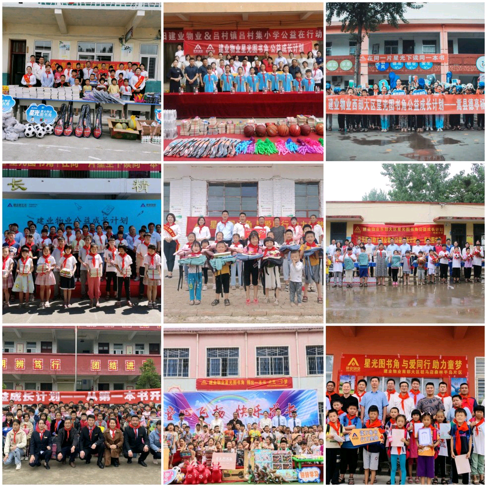 4月26日,“星光(guang)圖書角——建(jian)業(ye)物(wu)業(ye)公益成(cheng)長計劃”正式啟動(dong),我們(men)一直走(zou),走(zou)進(jin)我們(men)能走(zou)進(jin)的道路深處,尋找那些純真(zhen)的孩(hai)童。6月底,此活動第(di)一階段落(luo)下帷(wei)幕,建業物業與業主們共走進21所偏(pian)遠地區小學,累計為(wei)3153名貧困學生(sheng)捐贈12975本圖書及價值5萬元(yuan)的學習用(yong)品。