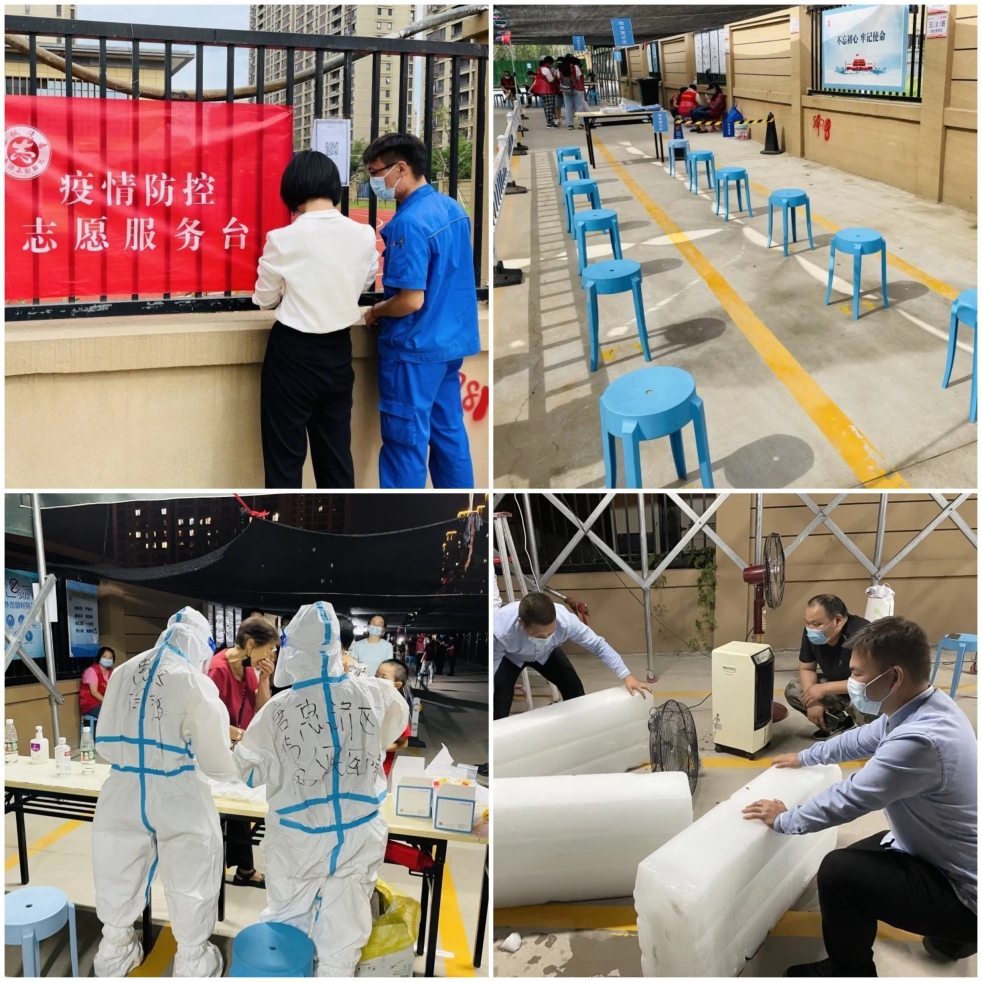 對醫護人員的守護一直沒變。全力配合醫護人員、社區工作人員做好核酸檢測工作,建業物業不分白天黑夜,一直都在。與此同時,建業物業通過放置風扇、冰袋、冰塊等多種方式打造檢測環境,讓工作人員更舒服一點。