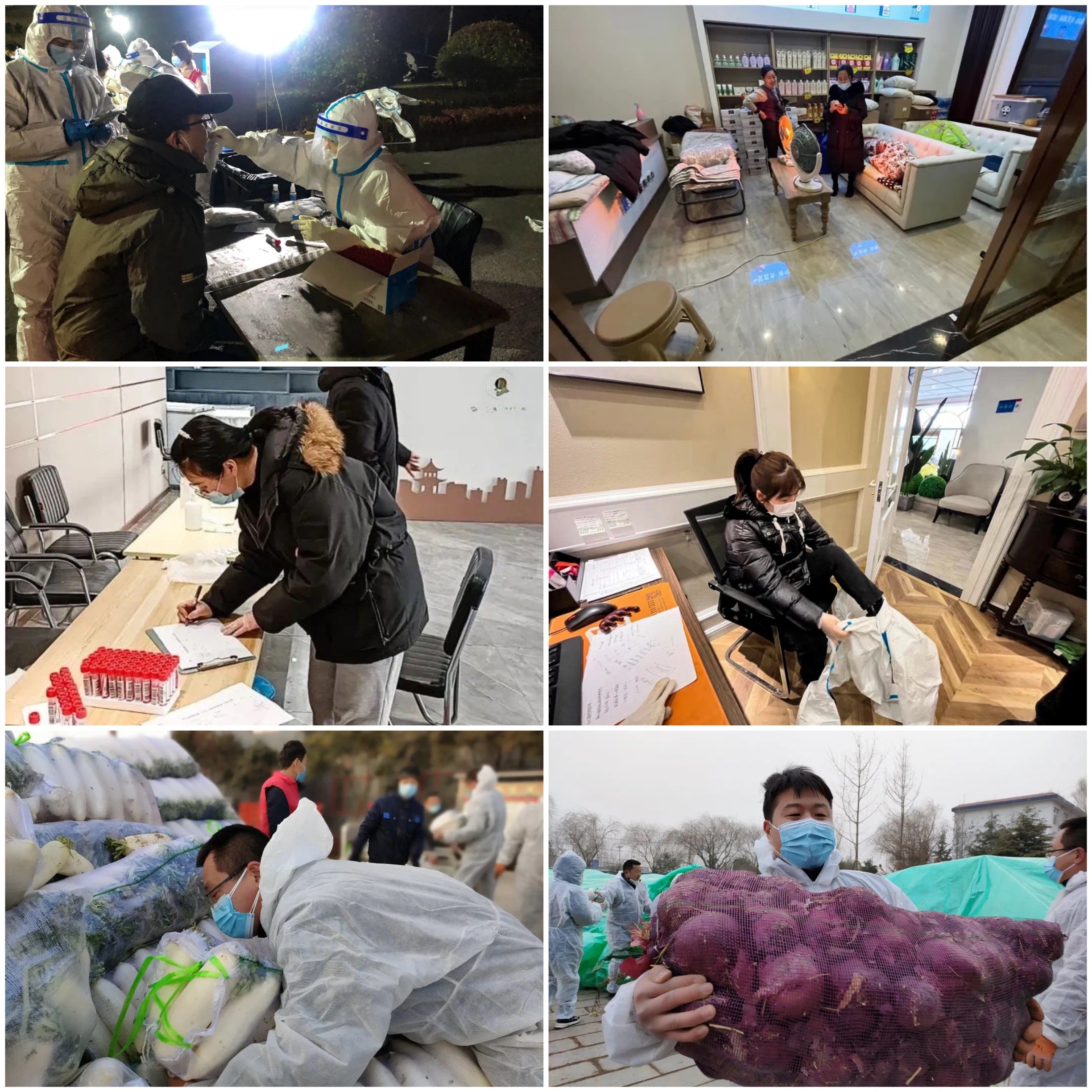 1月16日,小區已進行十一輪核酸檢測。物業全員都處于24小時待命狀態,有的同事餓了,習慣性地從箱子里拿出一桶泡面;有的同事困了,上一秒還在說話,下一秒已經坐著睡著了……此類種種,已成為團隊所有人的日常。片區經理鄒錕在工作之余為大家做飯,簡單的一碗面卻讓大家邊吃邊流淚,因為能吃上一口熱乎的清水煮面,此刻已是一件奢侈的事……