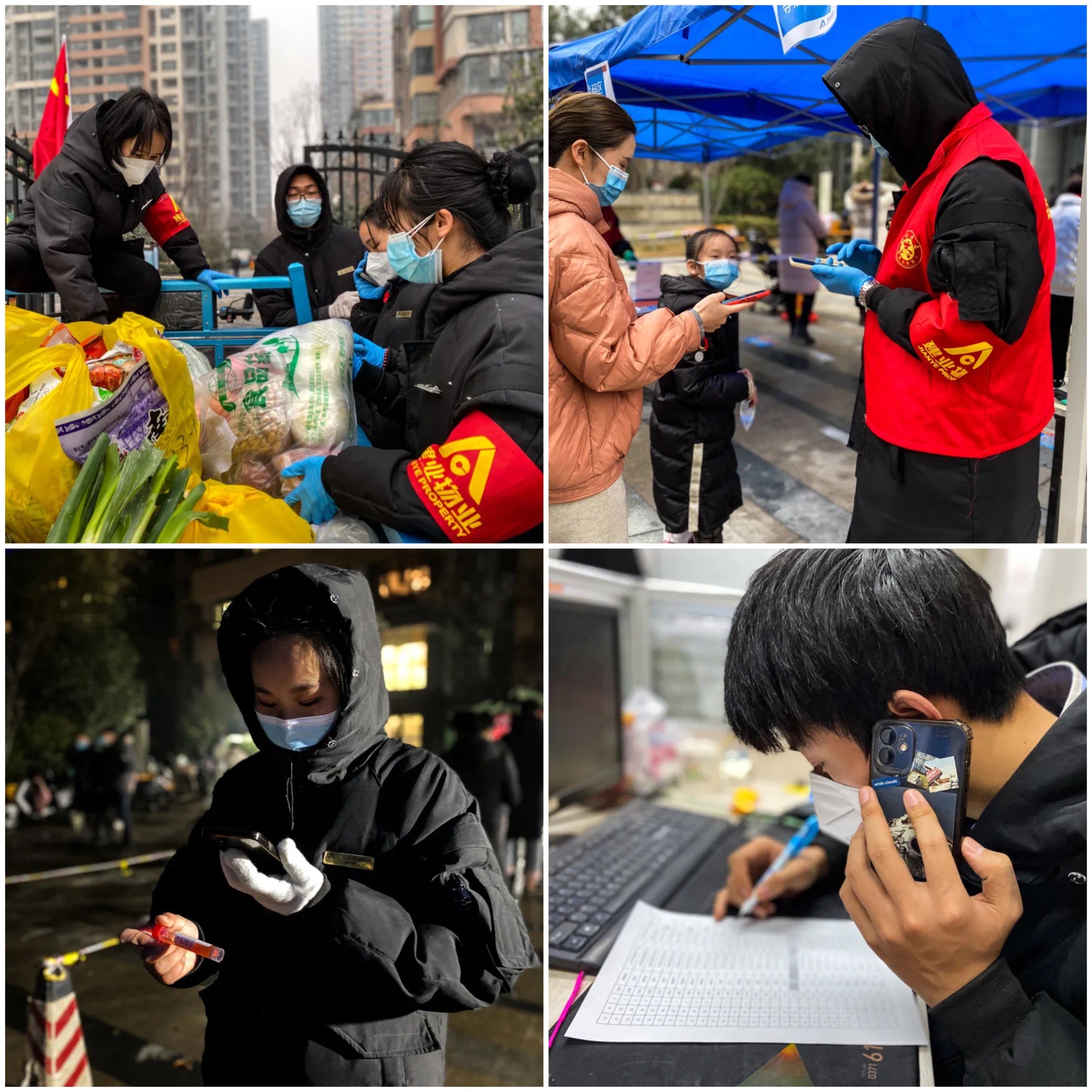 湯陰·建業森林半島經理侯洪躍積極協調各類相關事宜,忙得不可開交,核酸檢測現場時,他還負責組織小朋友的核酸檢測,以便加快檢測速度;貼心管家劉潔平均每天協助檢測2000余人,連續工作48小時,幾乎沒有休息,累倒時還在牽掛防疫工作。家人得知后勸她辭職,但她沒有放棄,短暫休息后又開始繼續忙碌;管家經理趙菲菲通宵達旦工作,她說:“那晚業主齊唱《我和我的祖國》相互加油打氣,歌聲一直在我心中回蕩,業主的支持讓我充滿動力!”;維修主管任燕龍連續多天連軸轉,輪到他休息時他總是偷偷出來繼續工作,政府運來蔬菜后,他總是扛起最重的袋子;維修工趙杰在防疫的同時還不忘處理業主遇到的難題,為無助的業主送去安心。