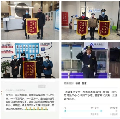 1月份,建業物業在管園區涌現出好人好事1094件,其中收到錦旗221面、感謝信159封、其他致電表揚等714次。