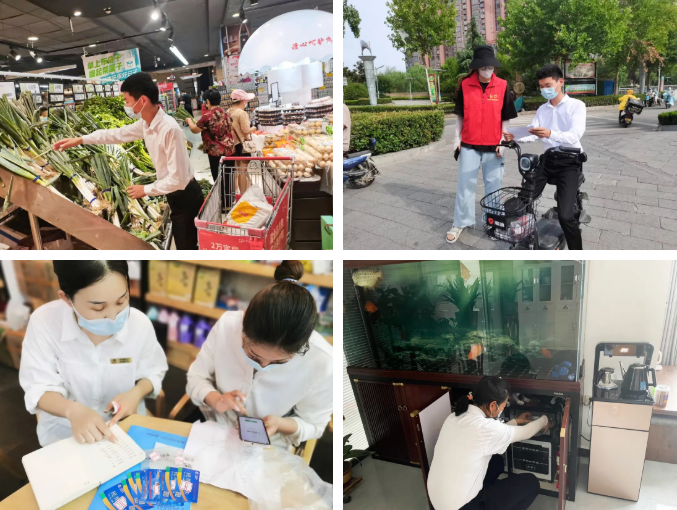 駐馬店·建業城貼心管家邢雙號得知有一名業主被封控在另外一個住處,家里沒有必備的生活物質,在和小區經理請示過后,他和維修工王海燕一同幫業主外出采購。