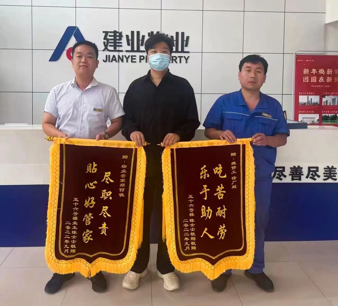 10月份,建業物業在管項目共涌現出好人好事892件,其中收到錦旗159面,感謝信94封,其他致電表揚640次。