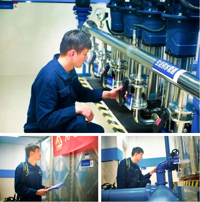 用水安全的背后,是建業物業維修工配合專業公司對水箱消毒的標準化流程:首先提前做好水箱、水池排空工作,隨后切斷生活水泵電源、關閉水箱進水閥,配合專業清洗隊進行清洗,緊接著清理作業現場,向水箱注水,同時抽取水樣、送至自來水水質檢測中心檢驗,最后還要詳細記錄清洗消毒相關情況。他們以嚴謹的工作,讓業主們用上放心的水。